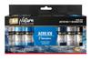 Set de pintura acrílica Plantec. 8 Colores fríos. de 60 ml. cada frasco. Calidad premium de excelente poder cubritivo, viscosidad media, alta adherenciay mezclables entre sí. Resinas de emulsión acrílica soluble en agua.