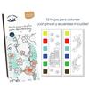 Libreta para colorear con acuarelas motivo "Ikigai". Contiene 12 hojas con hermosos motivos de mandalas para colorear, cada una con acuarelas incorporadas y un pincel incluido para que puedas pintar fácilmente donde quieras.