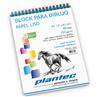 Papel libre de ácido. Contratapa resistente. Ideal para grafito, tinta, pastel, crayón y marcador.